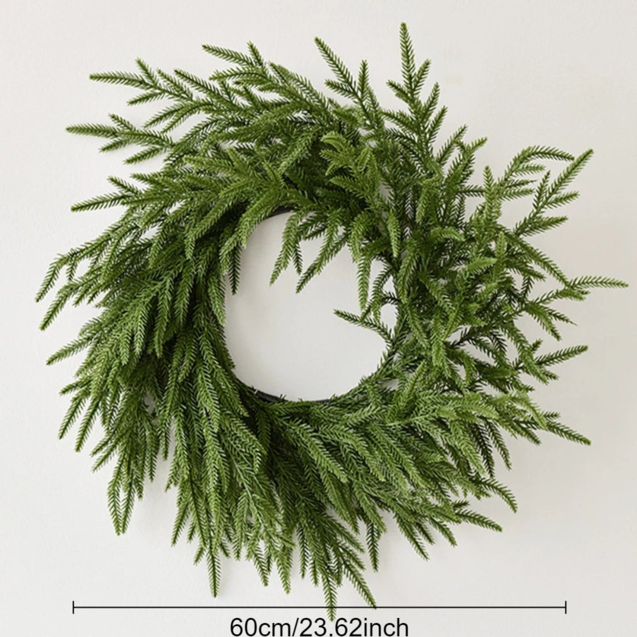 24 Inch Christmas Wreath for Front Door, Norfolk Pine Wreath for Home Porch Window Wall Farmhouse Decor, Green Wreath Front Door