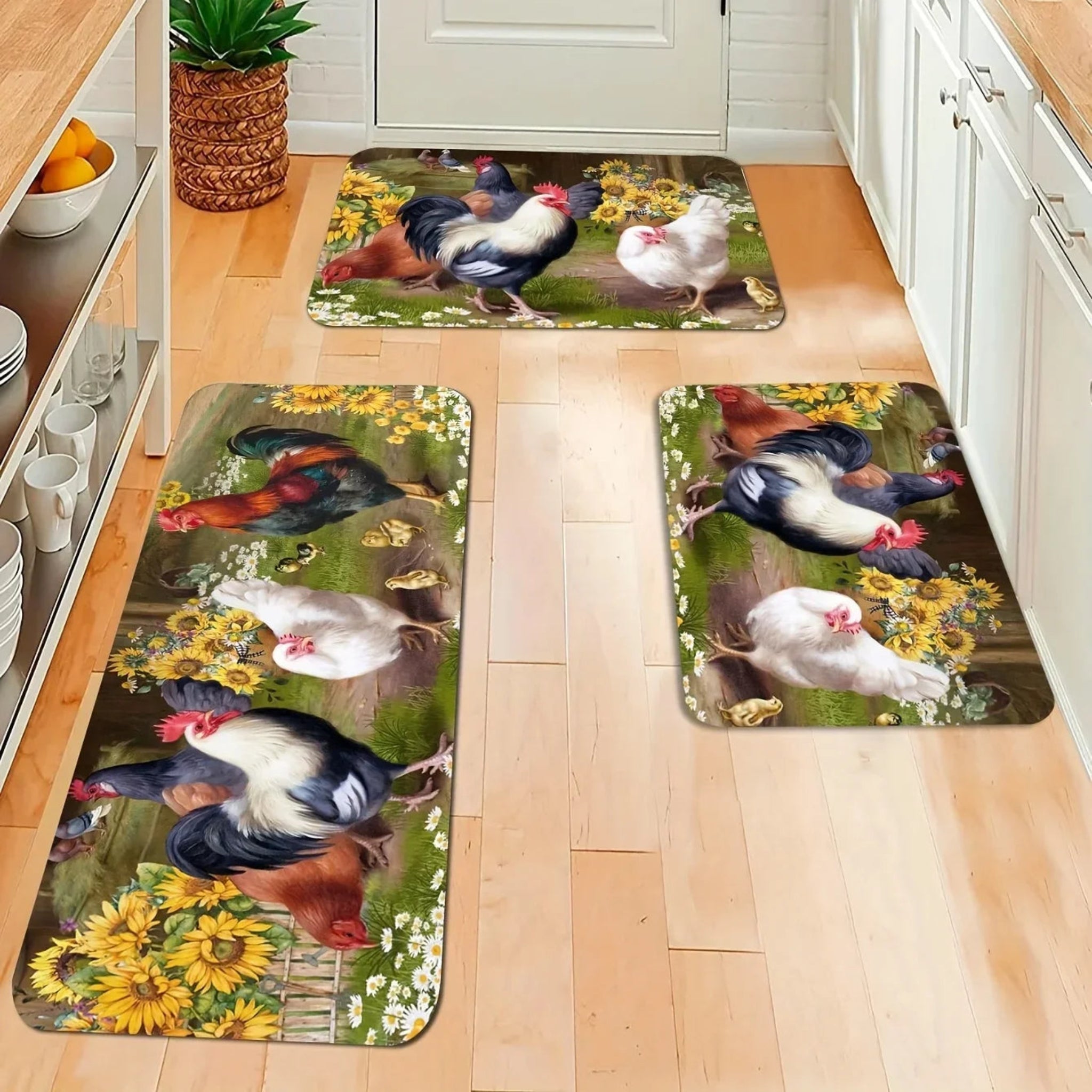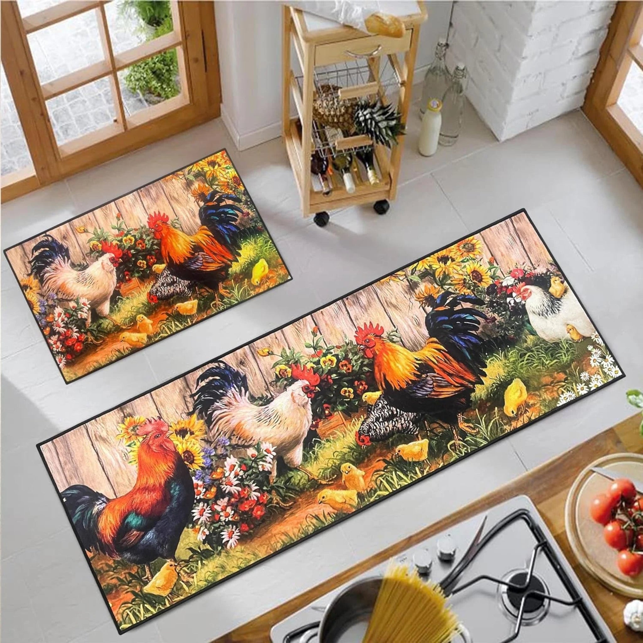 • Farmhouse Rooster Kitchen Floor Mats Living Room Balcony Hallway Entrance Non-slip Carpets Reusable Garden Courtyard Decor Rugs