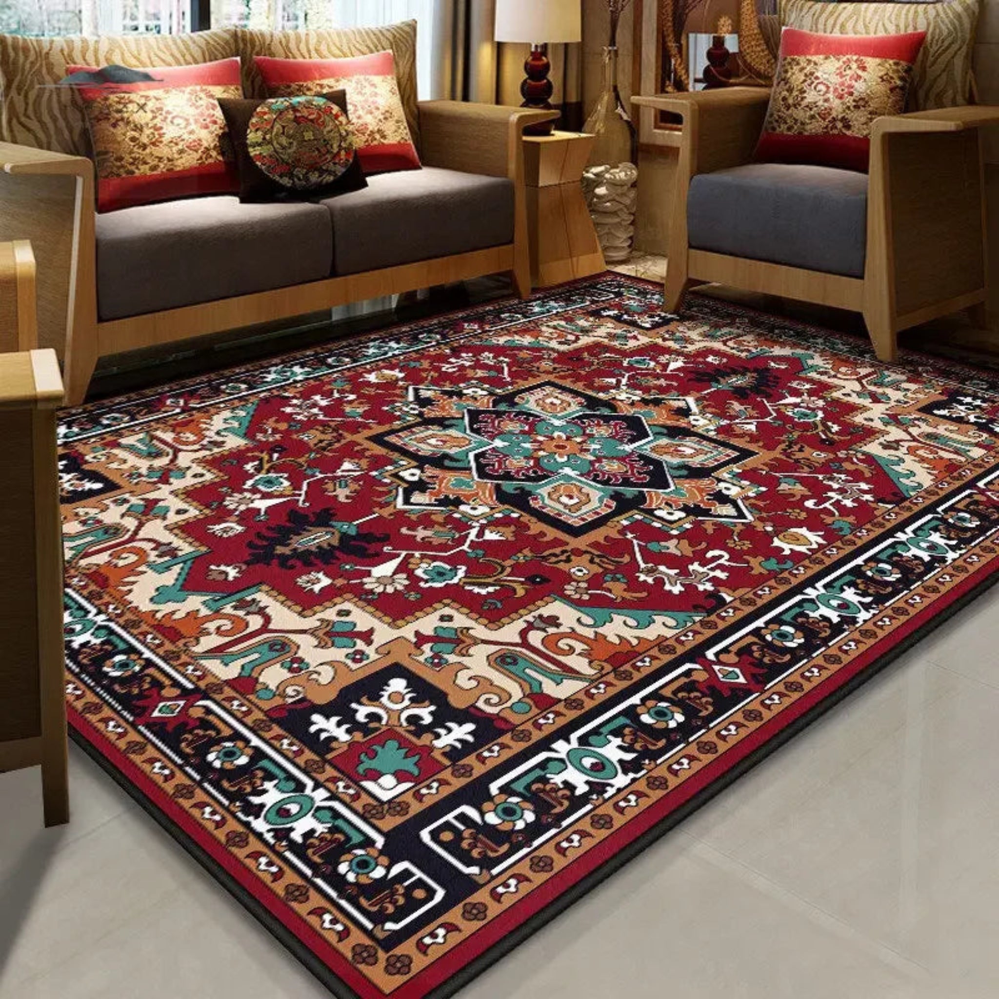 Persian Vintage Carpet for Living Room Bedroom Mat Non-Slip Area Rugs     Crafted entirely from 100% polyester, this rectangular area rug features a floral design...