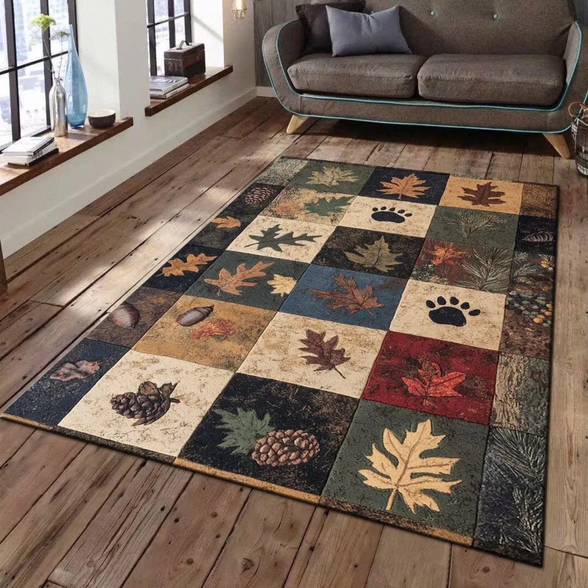 Rustic Cabin Area Mat Southwestern Lodge Bear Nature Print Mat with Large for Living Room Bedroom Home Decor Rugs for Bedroom