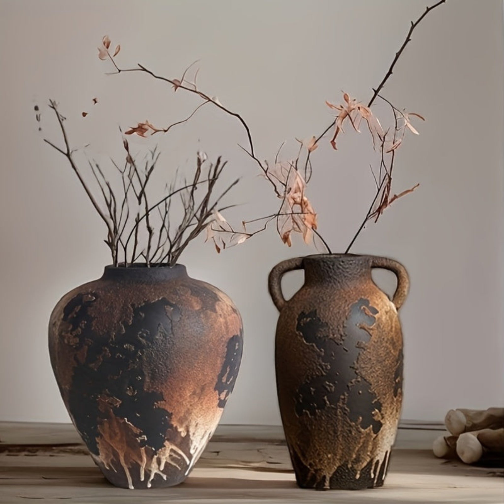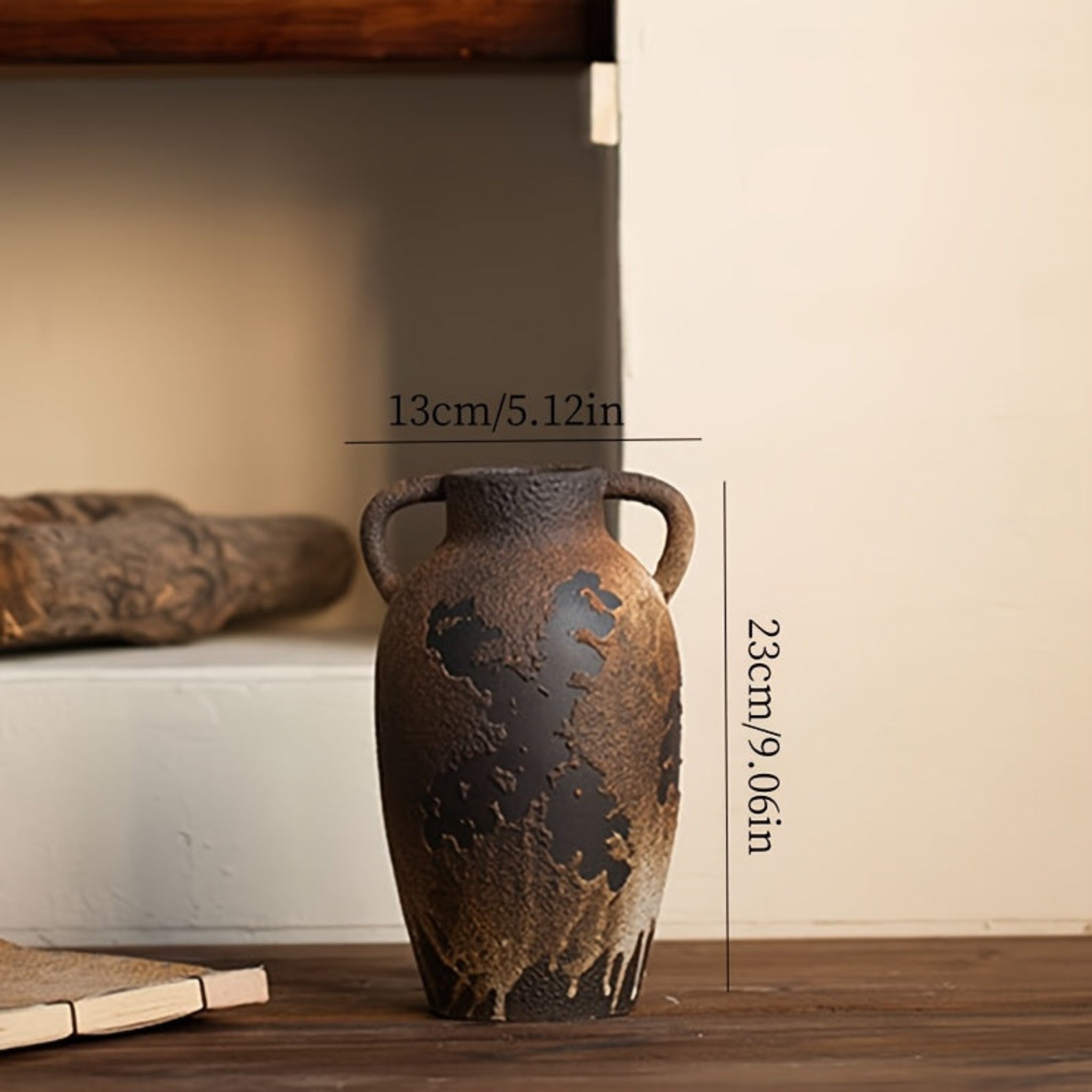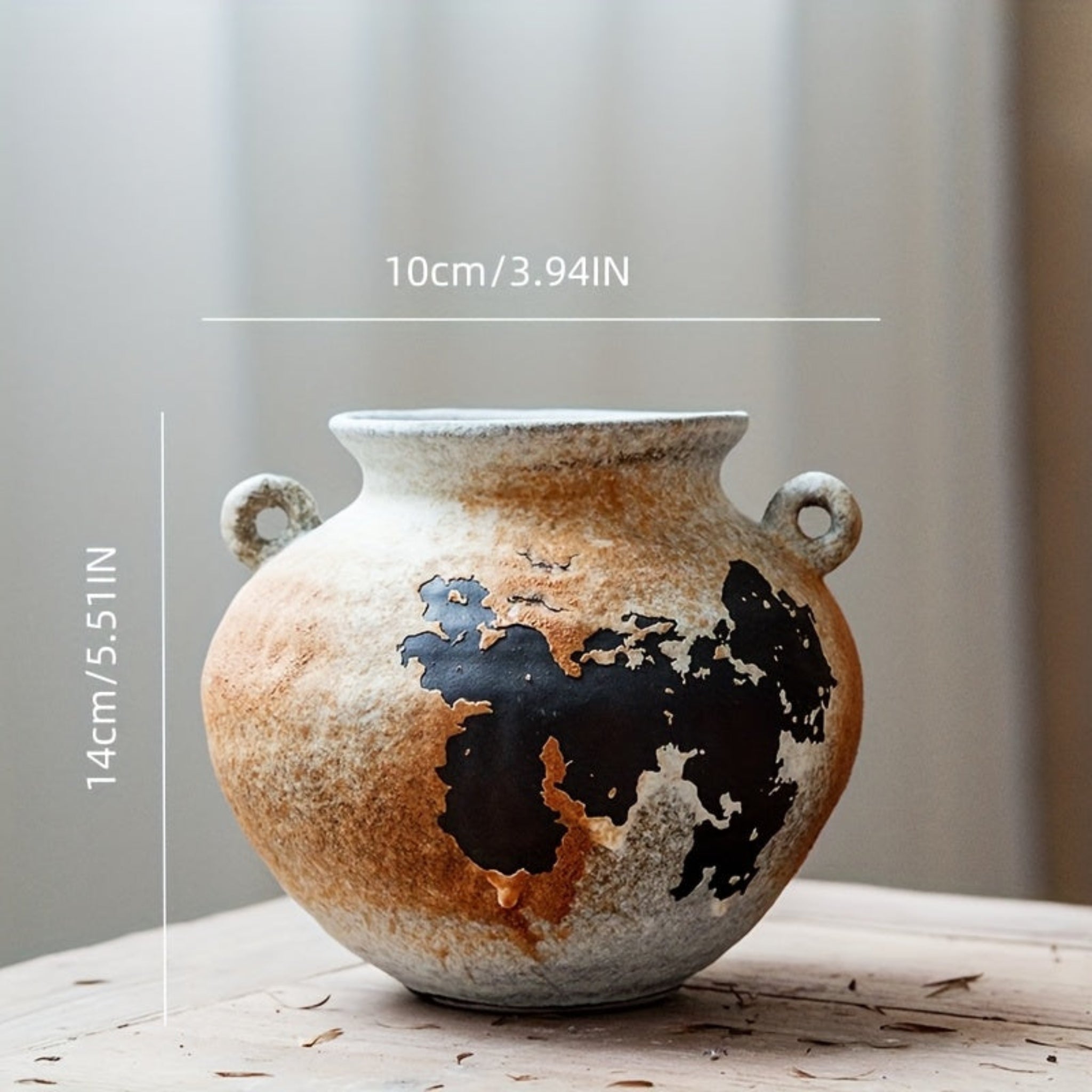 Vintage farmhouse ceramic vase, living room centerpiece vase, suitable for rustic European-style double-handle vases. Garden and office floral arrangement, dining table center decor, creative stone vessel vase, bar cabinet di