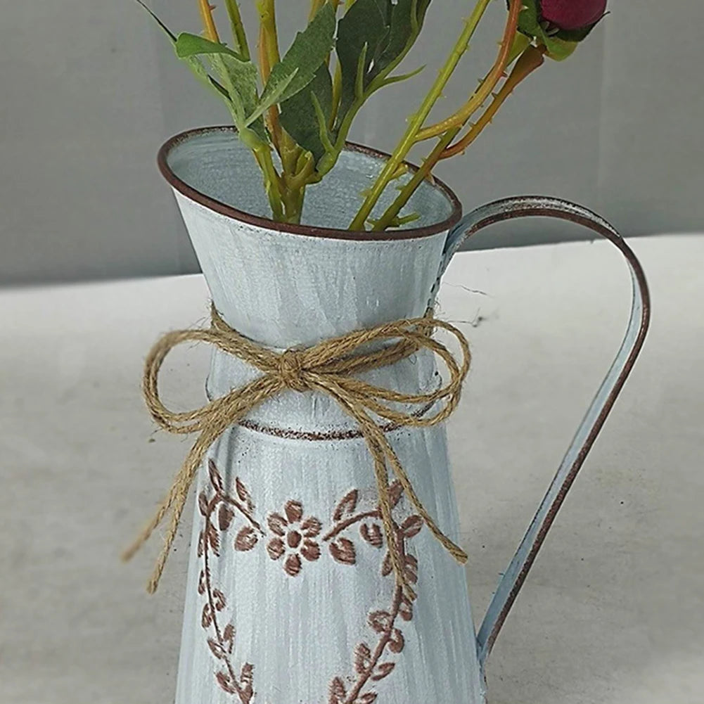 Rustic Plant Vase Country Style Vintage Kettle Shape Vase Decorative Flower Arrangement Pot with Handle for Garden Living Room