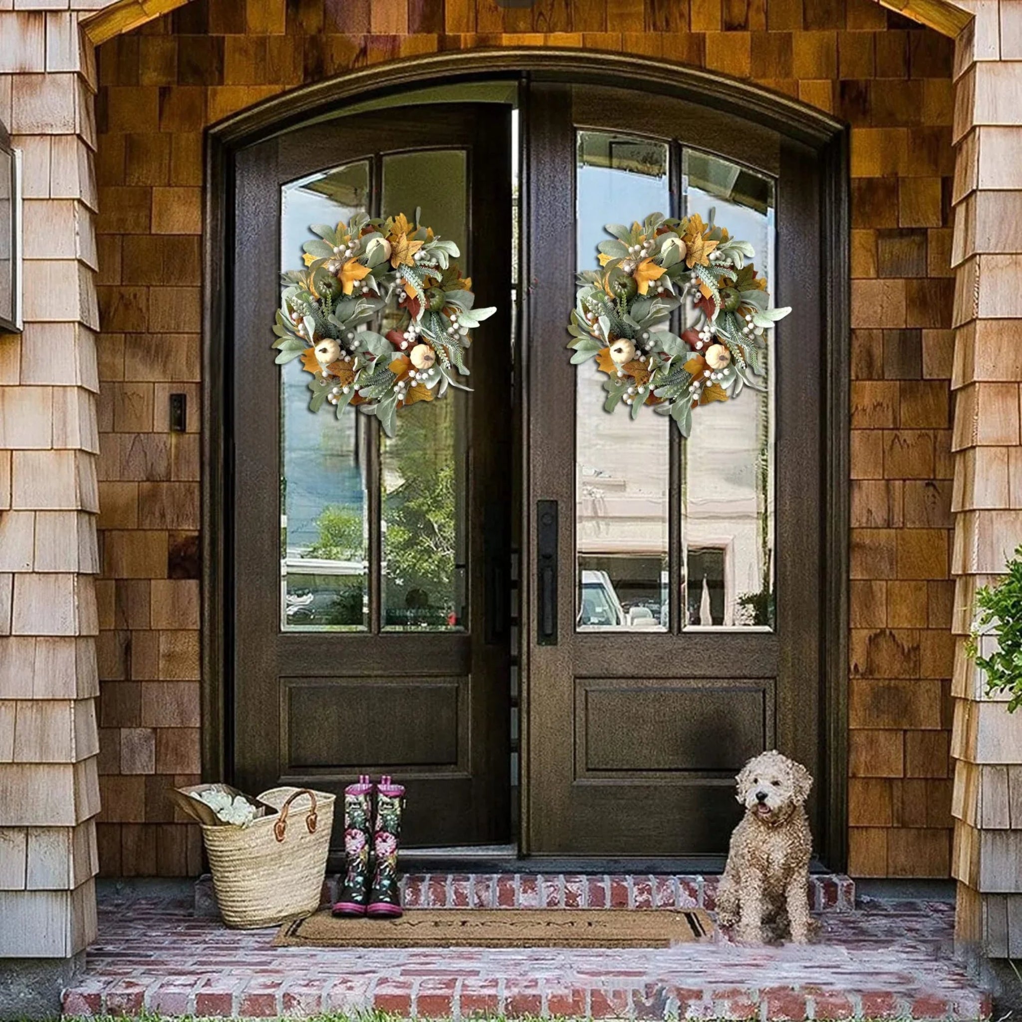 Thanksgiving Farmhouse Wreath Autumn Scene Decor Maple Leaf Artificial Wreath Perfect for Home and Restaurant