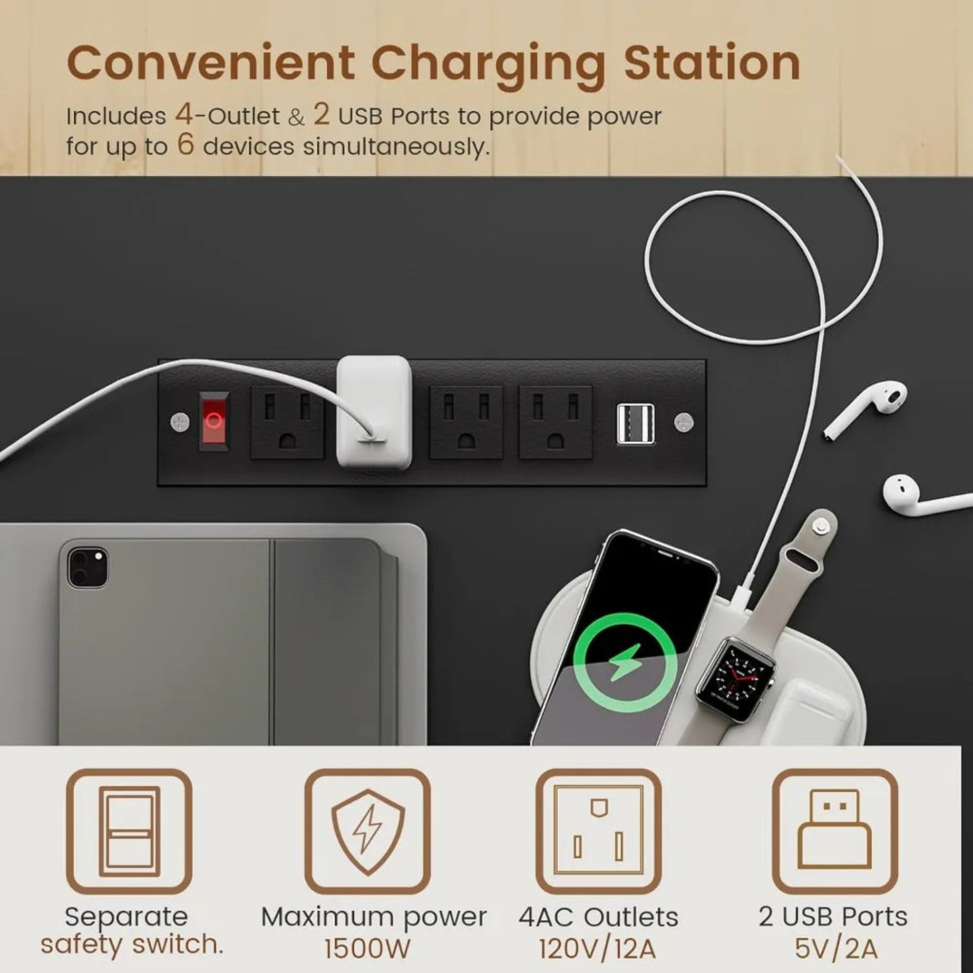 User Friendly: The farmhouse executive desk includes a built-in power strip with 4 outlets & 2 USB Ports, providing convenience for charging your gaming gear, tablet, printer, or phone. Don't worry about not having enough power sockets. Also includes an on-off switch, thanks to which one can power off with a single button, ensuring safe electricity use and strengthening security.