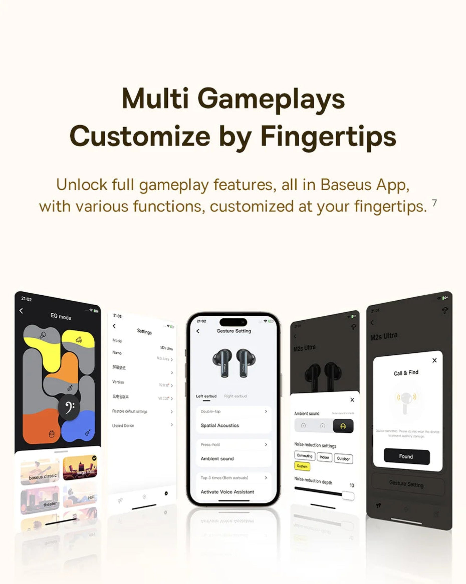 Baseus Bowie M2s Ultra Wireless Earphones Smart Screen 52dB Noise Cancelling Bluetooth 5.4 Headphones 3D Audio Spatial Earbuds